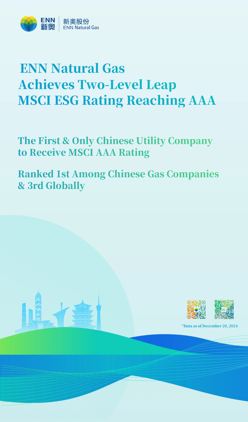 - ENN Natural Gas Becomes First Chinese Utility Company to Achieve MSCI ESG Rating Upgrade to AAA, After Three Consecutive Years 02 January 2025
